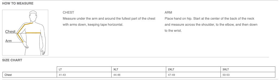 Click here for size chart.