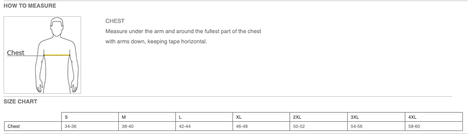 Click here for size chart.