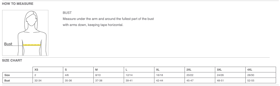 Click here for size chart.