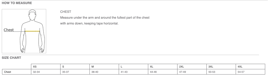 Click here for size chart.